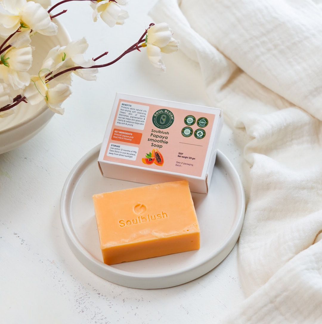 Enriched with the natural goodness of papaya, this soap gently cleanses and revitalizes your skin. Papaya is rich in enzymes like papain, which helps exfoliate dead skin cells, revealing a brighter, smoother complexion. Its natural antioxidants and vitamins nourish the skin, helping reduce pigmentation, dark spots, and uneven skin tone.